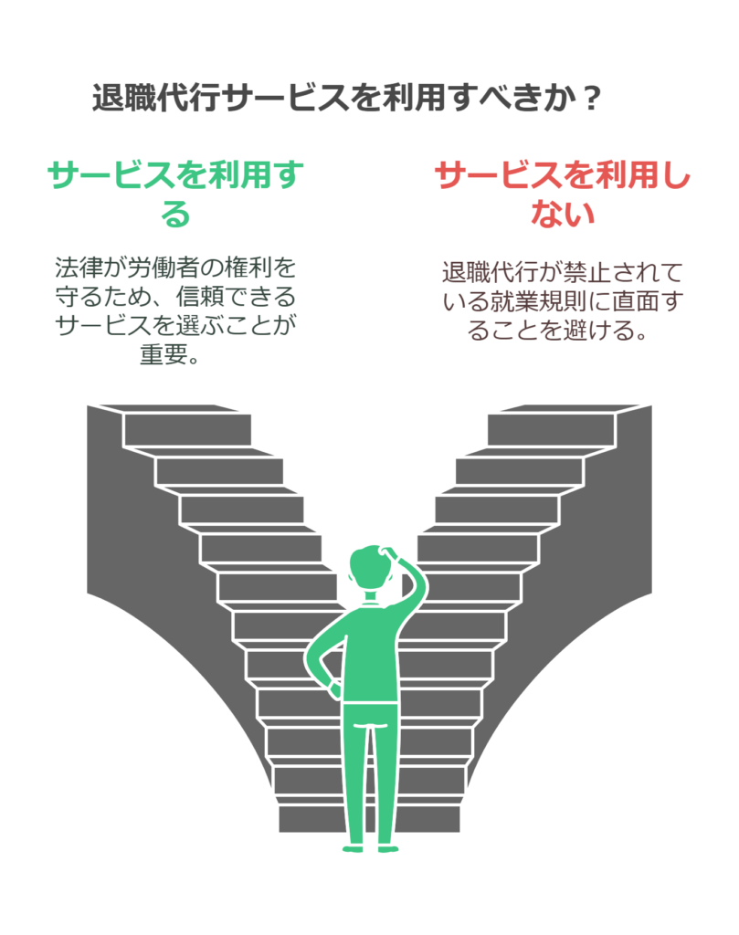 退職代行を利用する際は、信頼性の高いサービスを選び、法的に正しい手順で進めることが重要です。