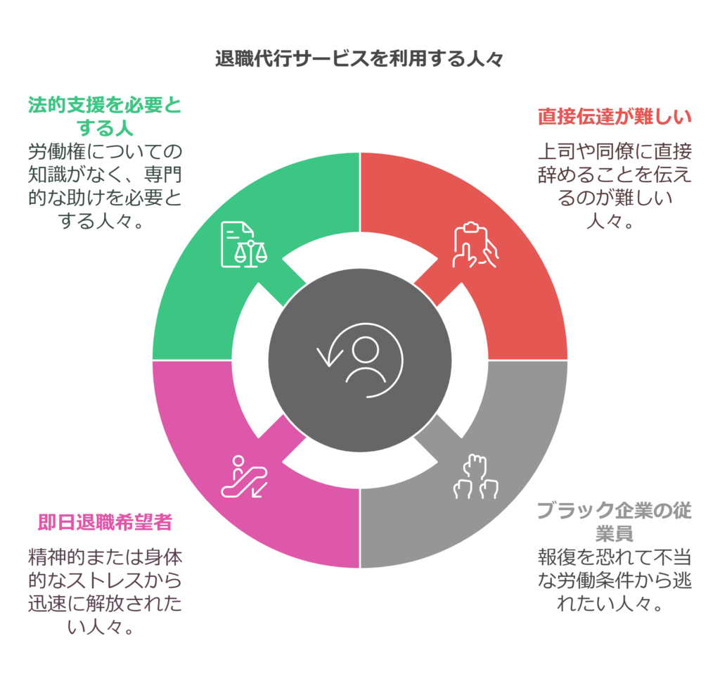 退職代行サービスは、上司や同僚に直接退職を言い出せない人のための心強い手段です。特に、ブラック企業での過酷な労働環境やハラスメントによる精神的負担を感じている方、即日退職を希望する方にとって非常に有効です。